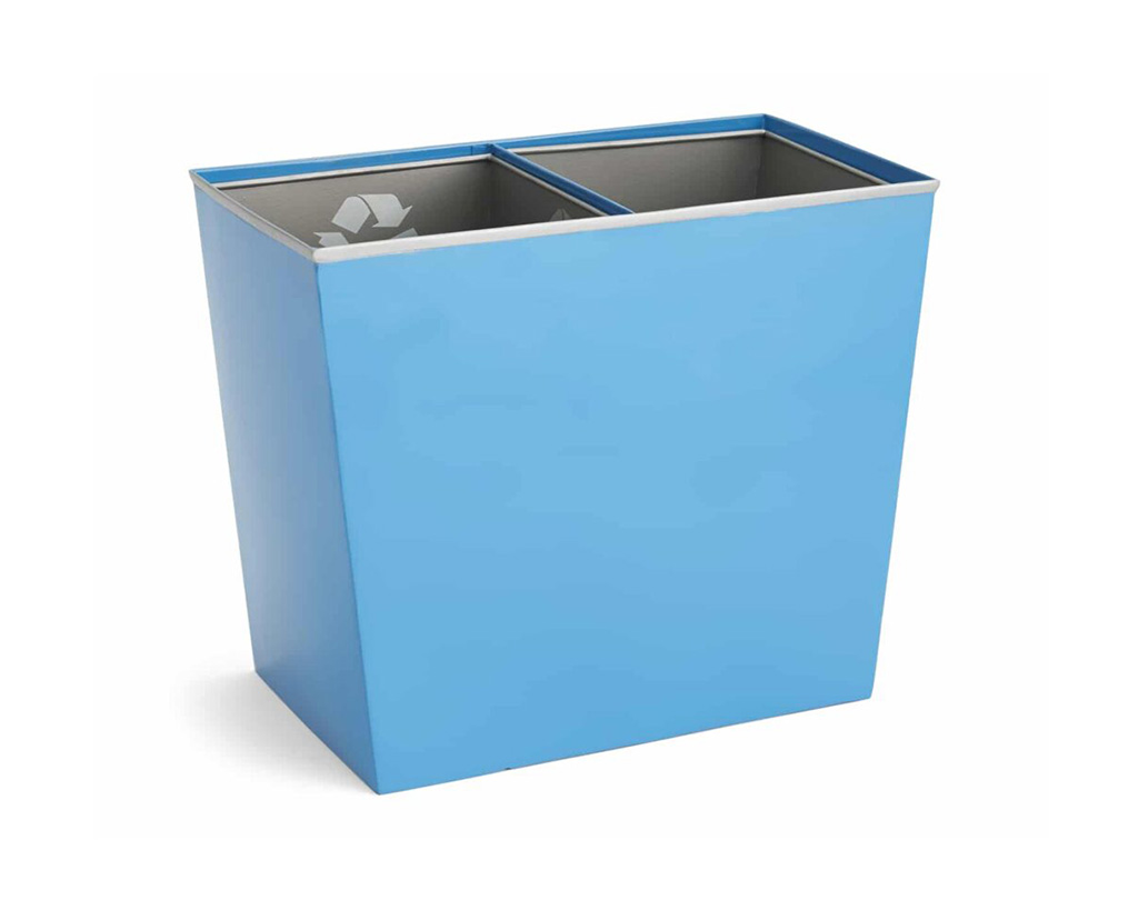 Shown in powder-coated light blue and matte iron.